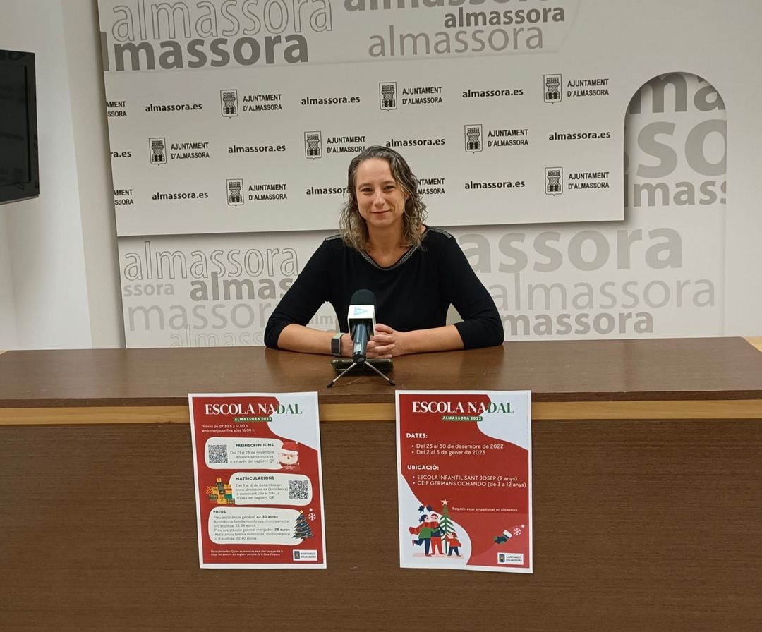 L'àrea d'Educació de l'Ajuntament d'Almassora ha ampliat l'oferta de la Escola de Nadal aquesta edició per a incloure als menors de dos anys. El consistori oferirà a l'escola infantil Sant Josep aquest servei mentre que els infantils de tres a 12 anys gaudiran de les activitats en el centre escolar Germans Ochando. La regidora d'Educació, Raquel Barberá, ha presentat aquest matí l’Escola de Nadal, que abastarà des del 23 al 30 de desembre i des del 2 al 5 de gener.