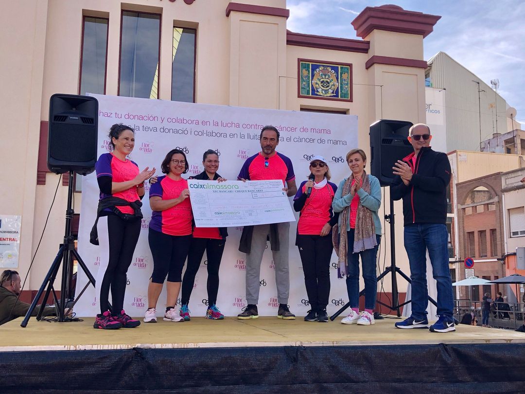 Els 4.852 euros recaptats hui en la IV Marxa contra el càncer de mama d'Almassora permetran dues noves línies d'investigació d'aquesta malaltia per a pacients oncològics de la província. L'objectiu de la convocatòria, amb les samarretes finançades per Caixalmassora i FCC, s'ha complit després del lliurament del xec al director de la càtedra de l'UJI d'Activitat Física i Oncologia ‘Fundació José Soriano Ramos’, Eladio Collado, i a la presidenta de la Fundació Le Cadó, Elvira Monferrer.