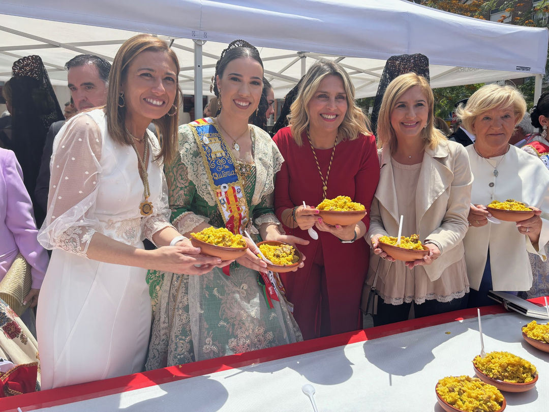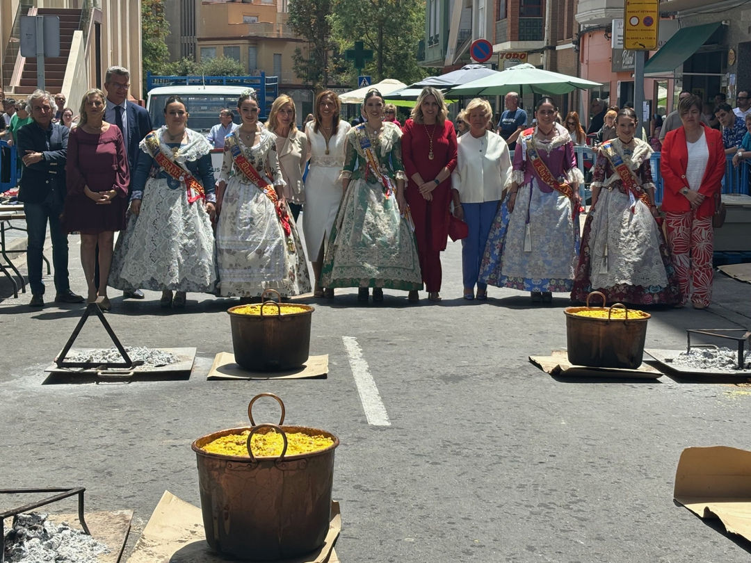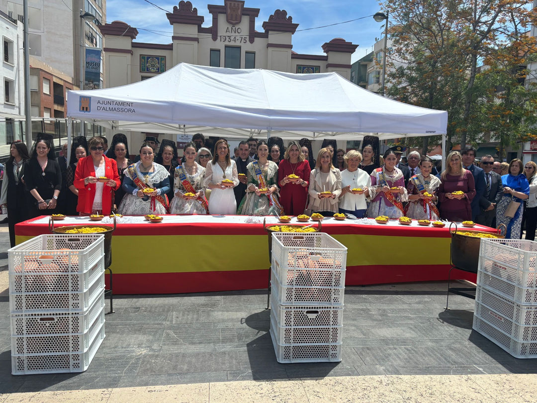Després d'este lliurament, s'ha iniciat el repartiment de prop de 8.000 racions cuinades en 52 calderes, encara que només 22 d'elles es preparen al carrer. És el plat més popular d'Almassora, un arròs sec que es cuina de manera magistral. Cadascuna de les calderes està composta per 14 quilos d'arròs i 14 de pollastre, 2,5 quilos de costella, litre i mig d'oli, 2,5 quilos de pésols, tres pots de tomaca, alls i sal.