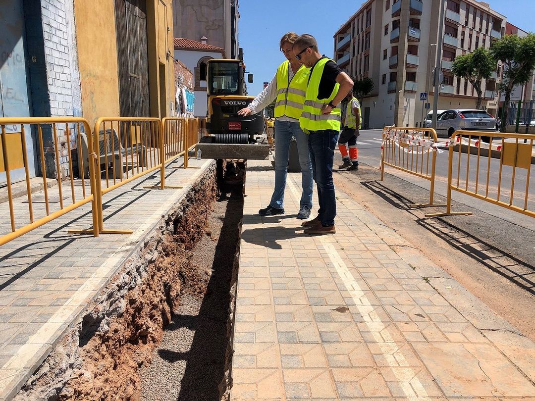 La responsable d'explotació de Facsa a Almassora, Patricia Agrasar, i el regidor de Serveis Públics en funcions, Joan Antoni Trenco, han visitat els treballs per a conéixer l'abast de l'actuació, que afecta a 44 metres de conducció de formigó de 400 mil·límetres molt envellida pel pas del temps. Cal recordar que el col·lector en aquest tram discorre per la vorera a una profunditat de metre i mig.