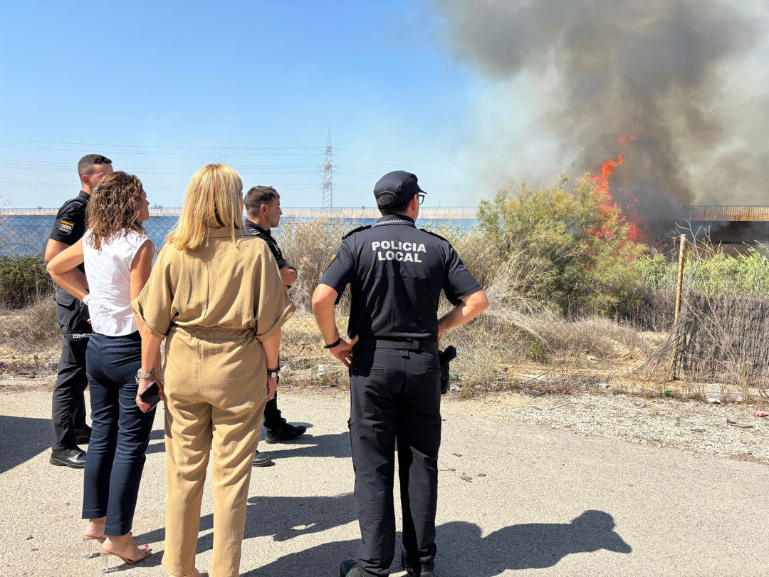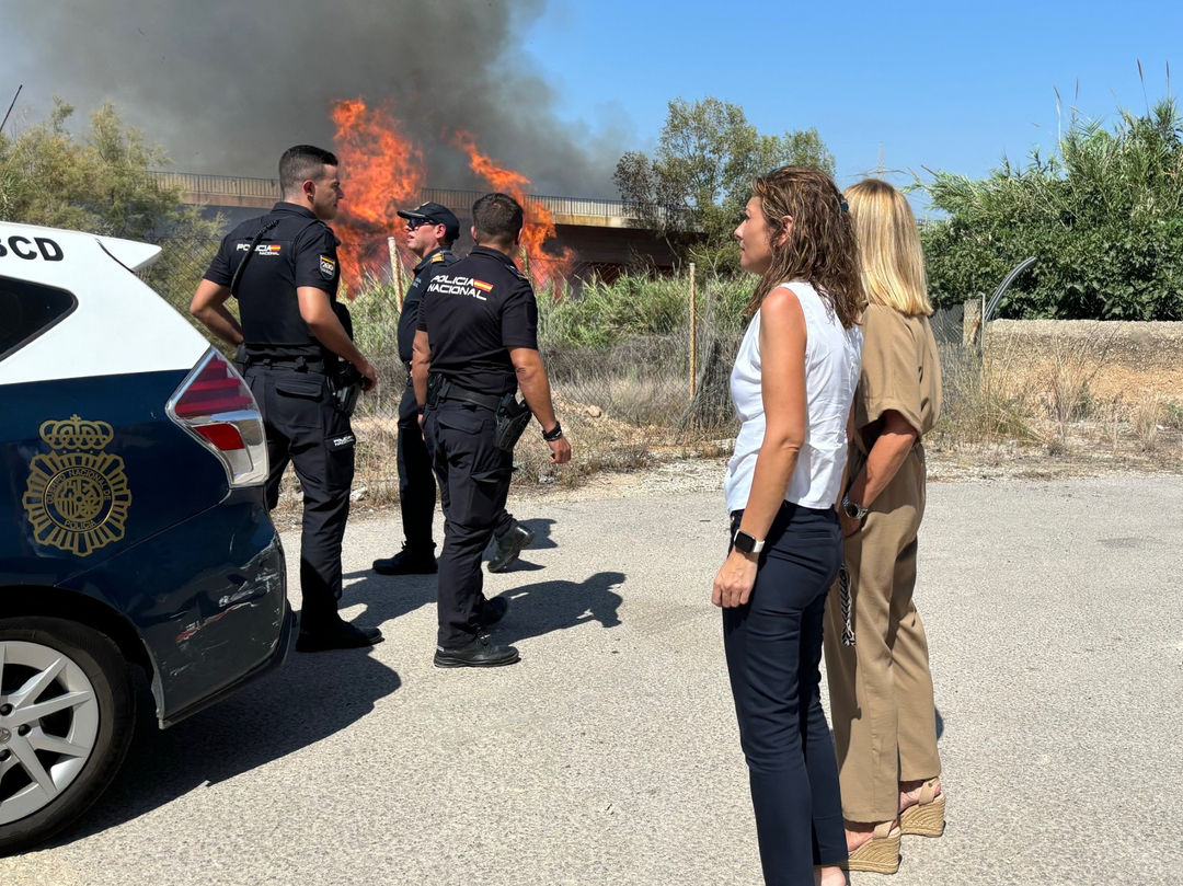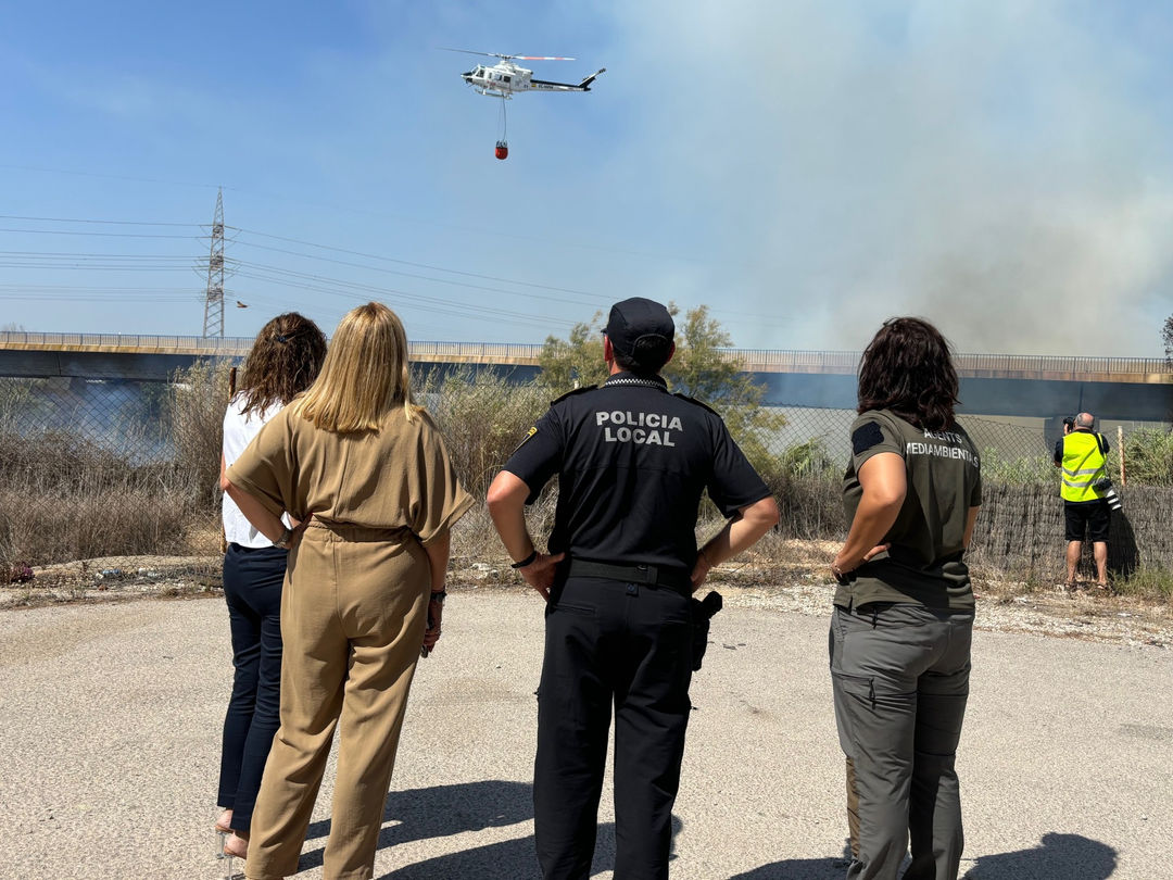 L'alcaldessa d'Almassora, María Tormo, al costat de la regidora de Seguretat Ciutadana, Silvana Rovira, ha supervisat les tasques d'extinció de l'incendi registrat en el matí d'este divendres en la zona del riu Millars.
