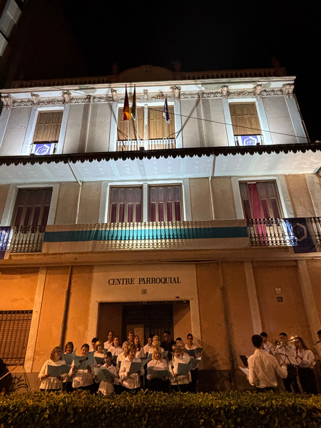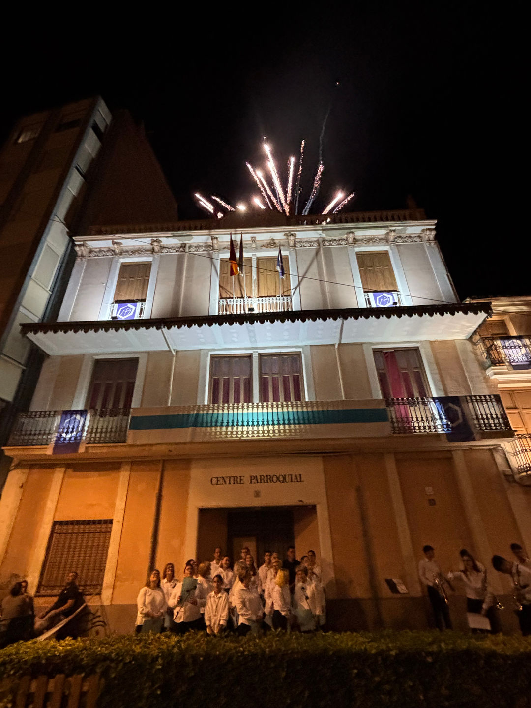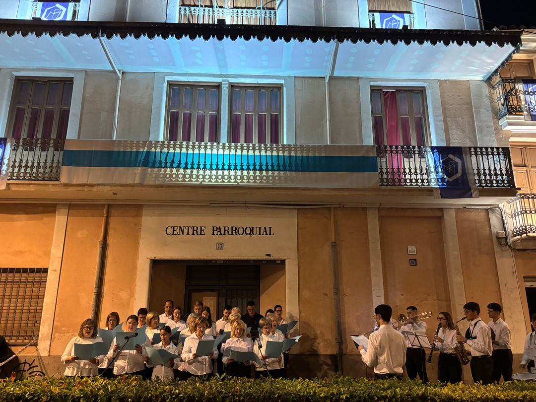 L'alcaldessa d'Almassora, Maria Tormo, juntament amb representants de la corporació municipal ha acompanyat als jóvens congregants en el tradicional tret d'eixida, on no ha faltat la il·luminació de la seua façana i els focs artificials.