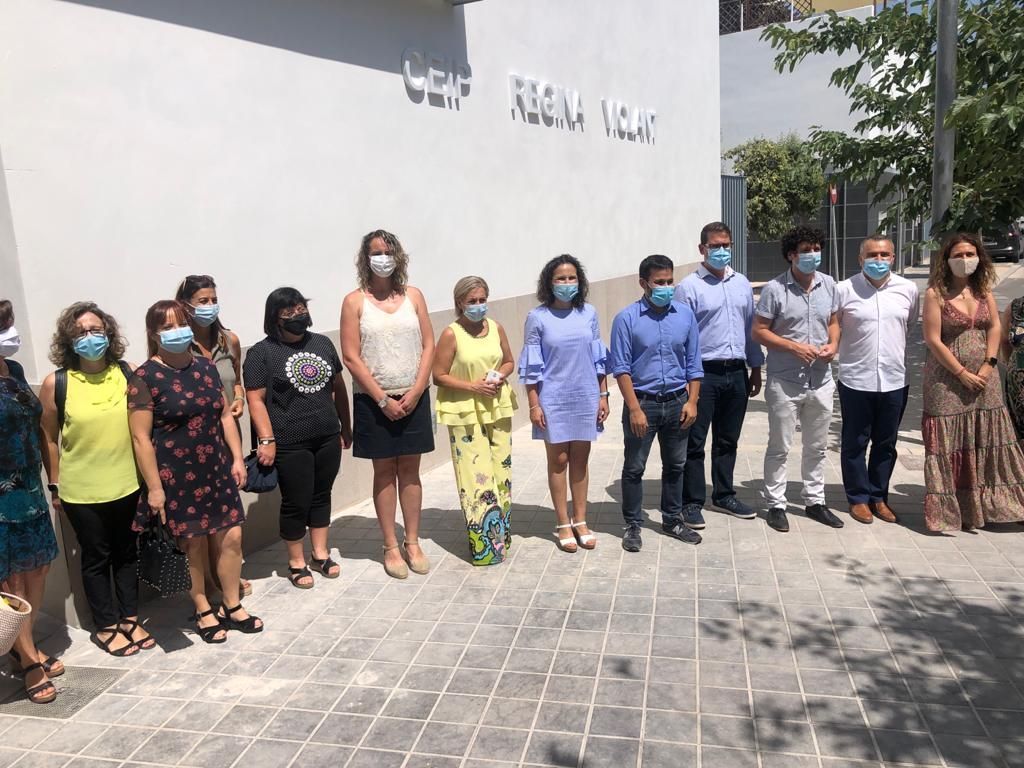 El conseller Vicent Marzà; l'alcaldessa, Merche Galí, i la regidora d'Educació, Raquel Barberà, han assistit a la signatura de la recepció al costat de la directora del Regina, Estefanía Arnau, després que l'empresa Añil Servicios, Ingeniería y Obras, segona adjudicatària dels concursos públics després de l'abandó de la primera, hagi retallat els terminis d'execució per a finalitzar en temps rècord la construcció de l'edifici.