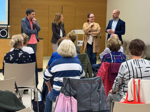 L'alcaldessa d'Almassora, María Tormo, al costat del regidor d'Educació, Vicente Blay Casino, ha visitat a l'alumnat de la UNED Sènior. Este aulari compta amb prop de 40 alumnes.
