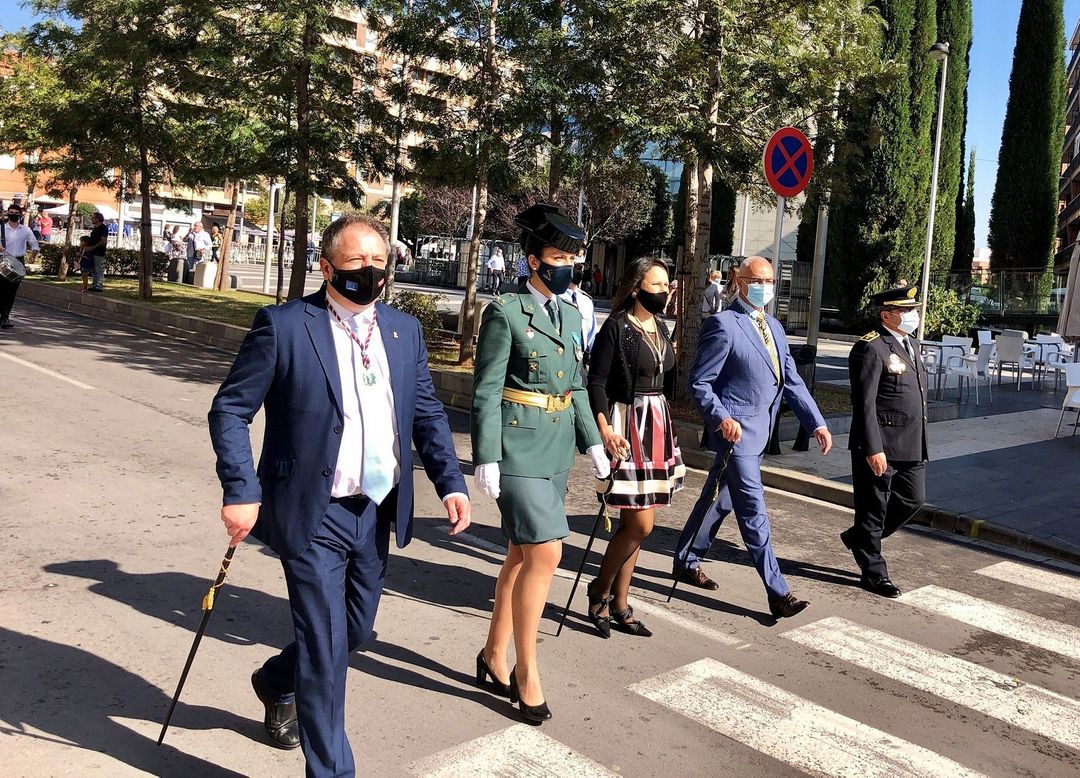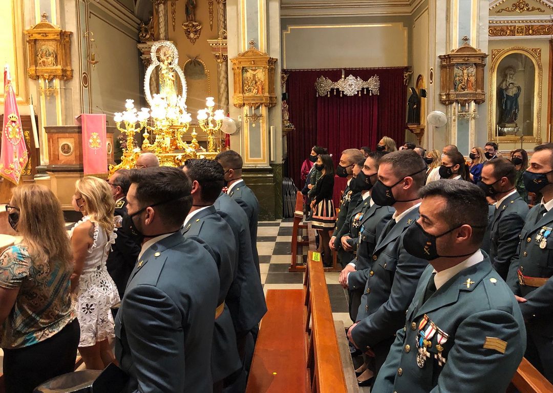 La jornada ha començat aquest migdia amb la missa en commemoració del dia del Pilar. Autoritats i Guàrdia Civil s'han citat a la porta consistorial a les 11.30 hores per a dirigir-se a l'església de la Nativitat, on el rector Juan Ángel Tapiador ha oficiat la missa. La tinenta de la Guàrdia Civil, Paula Matutano, ha presidit així la primera jornada de festa de la Benemèrita com a màxima responsable del Cos a Almassora. Precisament la institució ha renunciat al tradicional brindis en la caserna per a evitar contagis per coronavirus.
