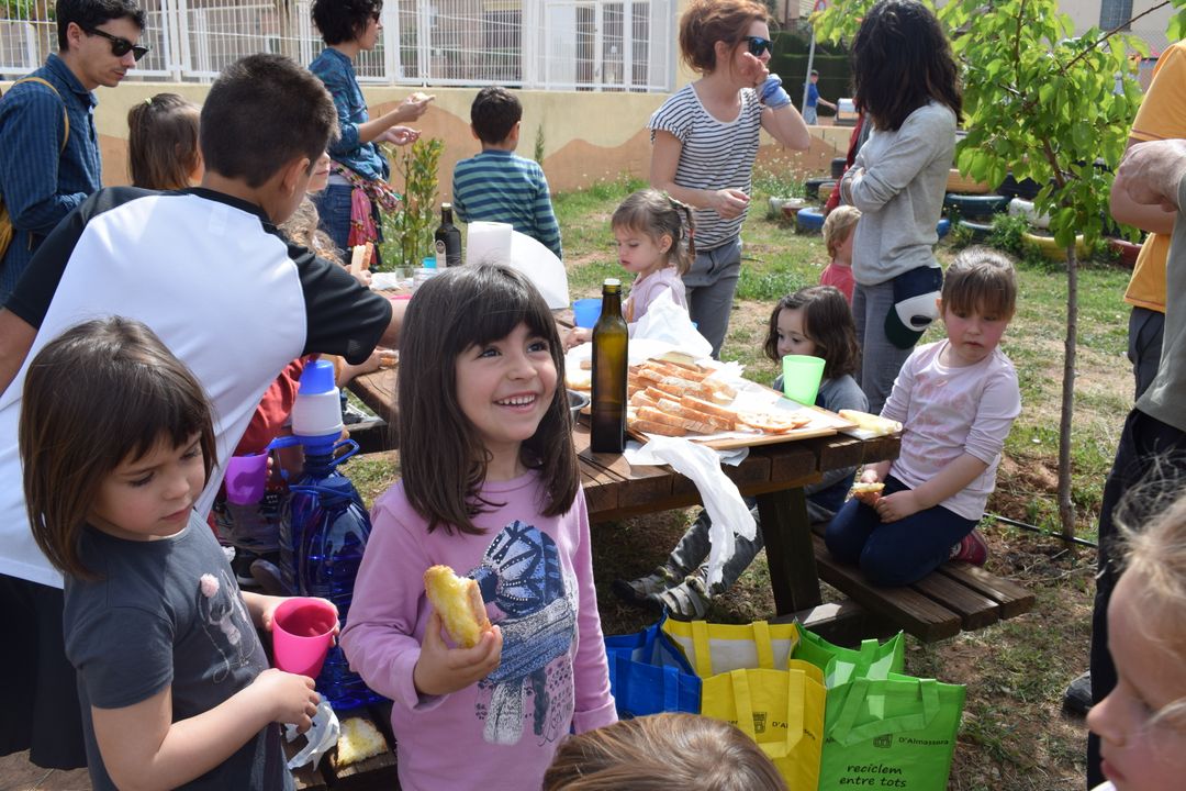 En cadascun dels tallers que es realitzen hi ha un esmorzar saludable consistent en fruits secs i pa amb oli, i hi ha un contenidor específic per a cada tipus de residu.