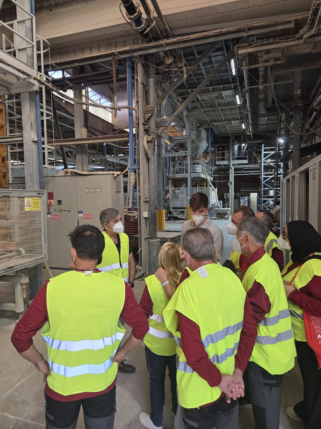 22/10/2025- L'alumnat/treballador de Construcció visita les instal·lacions de la fàbrica de PAMESA. La visita és guiada per diversos tècnics de PAMESA al llarg de la cadena de producció i laboratori. A continuació, reben una formació teòrica de característiques i de neteja dels seus productes porcellànics.