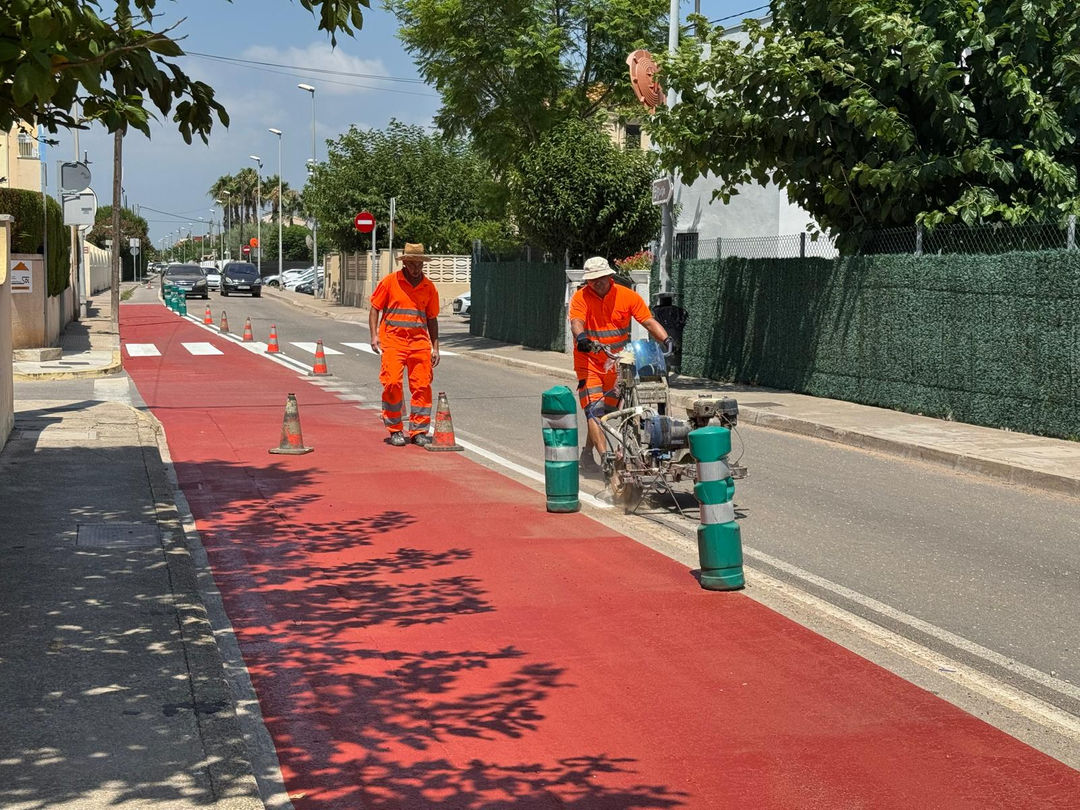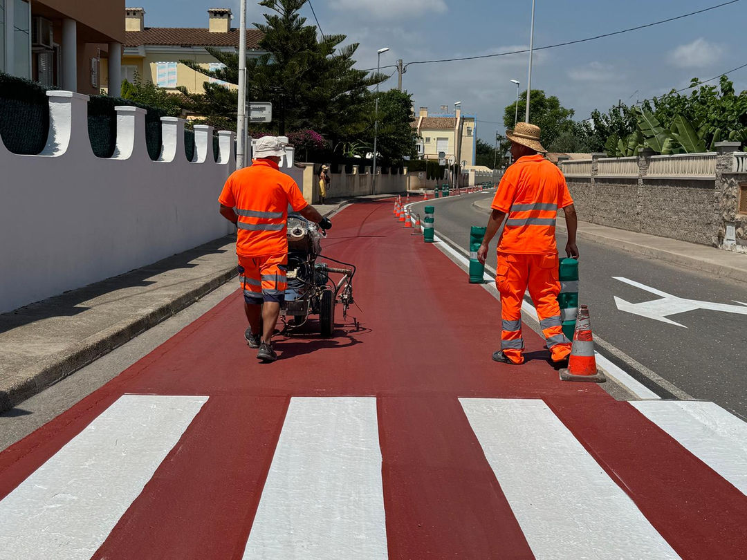 El Ayuntamiento de Almassora está llevando a cabo tareas de adecuación y mantenimiento en diversas señales viales, como pasos de peatones, situados en viales muy concurridos de la playa de la localidad.
