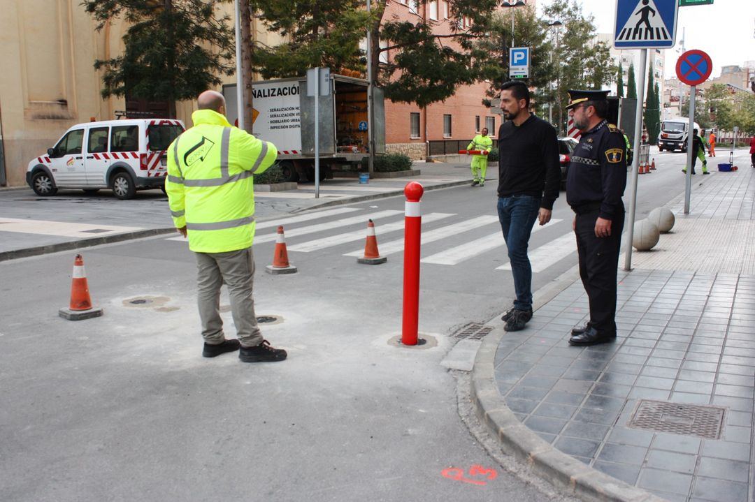 Los operarios han iniciado esta mañana los trabajos para la instalación de once bolardos móviles que la Policía Local utilizará para impedir el paso de vehículos al entorno de las plazas de España y Pere Cornell. En este punto del núcleo urbano se instalan el mercado ambulante durante dos mañanas cada semana y se celebran numerosos actos a lo largo de todo el año, por lo que el espacio “ganará en seguridad al disponer de estas pilonas que aislarán claramente la zona peatonal y que representarán un elemento robusto que no podrá ser desplazado sin autorización” como ha confirmado el concejal de Seguridad Ciudadana, Roger Beltrán.