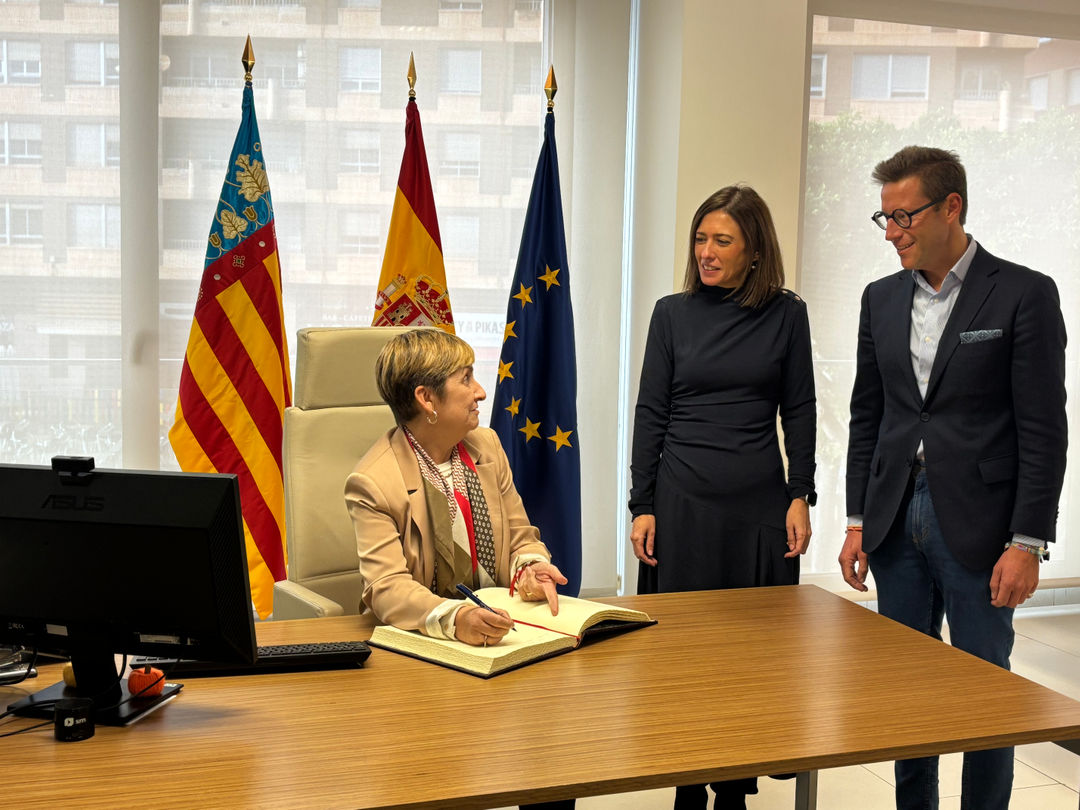 La consellera de Innovación, Industria, Comercio y Turismo, Marián Cano, ha visitado Almassora para trasladar el apoyo del Consell, a través de acciones y subvenciones, al extenso sector industrial de la localidad. La alcaldesa, María Tormo, ha recibido a Cano en el Ayuntamiento, donde ha firmado en el libro de honor. Durante el encuentro, la alcaldesa ha puesto de manifiesto el potencial de Almassora, quien se ha convertido en líder en modernización industrial dentro de la Comunitat al ser el municipio con más Entidades de Gestión y Modernización (EGM).