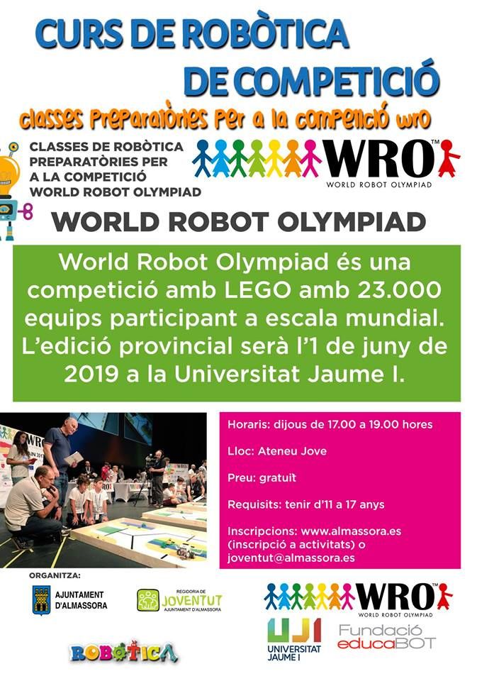 A fin de que los y las jóvenes puedan entrenarse para la competición, el programa incluye un concurso local que se celebrará entre el 3 y el 4 de mayo, para el que las clases preparatorias comenzarán el próximo 8 noviembre. El torneo provincial tendrá lugar en la UJI el próximo 1 de junio y los equipos ganadores podrán participar en la fase nacional de la World Robot Olympiad.