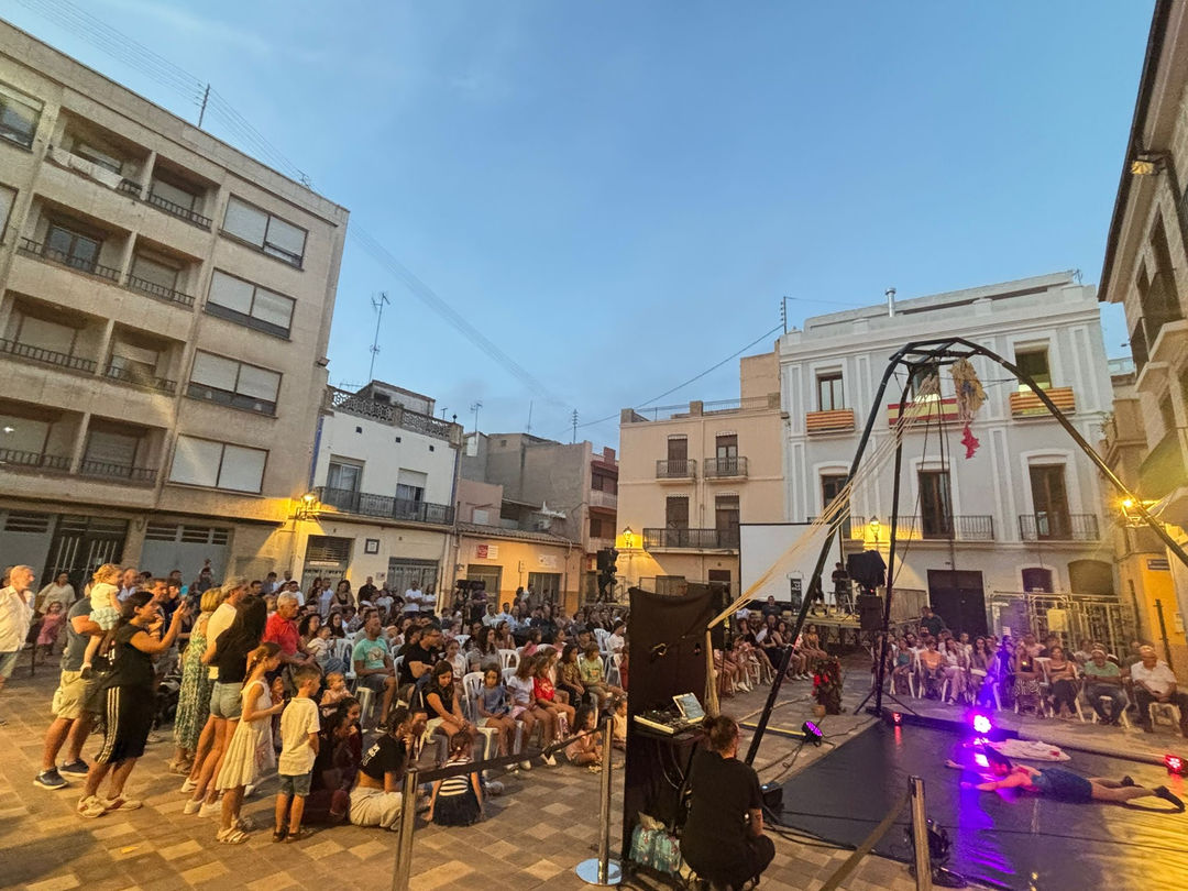 A las 19.00 horas, en la plaza de la Iglesia, habrá un concierto de la Colla de Dolçaines i Tabals Les Goles y, a continuación, habrá una función de circo bajo el título Ara de la Compañía Andrea Rios. Se trata de un espectáculo de circo contemporáneo que fusiona los lenguajes del teatro y de la danza junto con las técnicas de acrobacia aérea. Es una experiencia sensorial, entre la fuerza femenina, el vuelo y la poesía del movimiento.