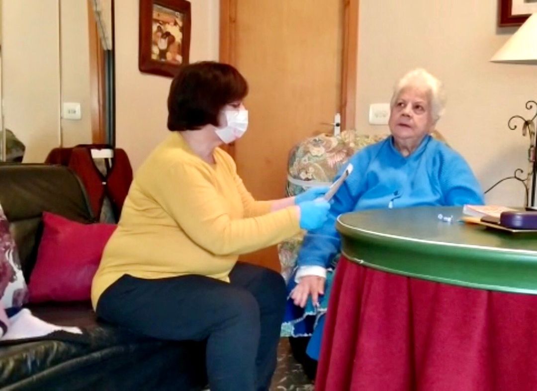 Concretamente, el Servicio de Dependencia del Ayuntamiento de Almassora ha gestionado esta iniciativa a través de las empresas vinculadas al Servicio de Ayuda a Domicilio (SAD). Las auxiliares han trasladado las misivas a las personas beneficiarias de los servicios de amparo a mayores –en la imagen, una usuaria del servicio de Les Alqueries-. Esta visita diaria, acompañada de un mensaje de aliento y esperanza, ha sido en muchas ocasiones la única compañía recibida por los mayores.