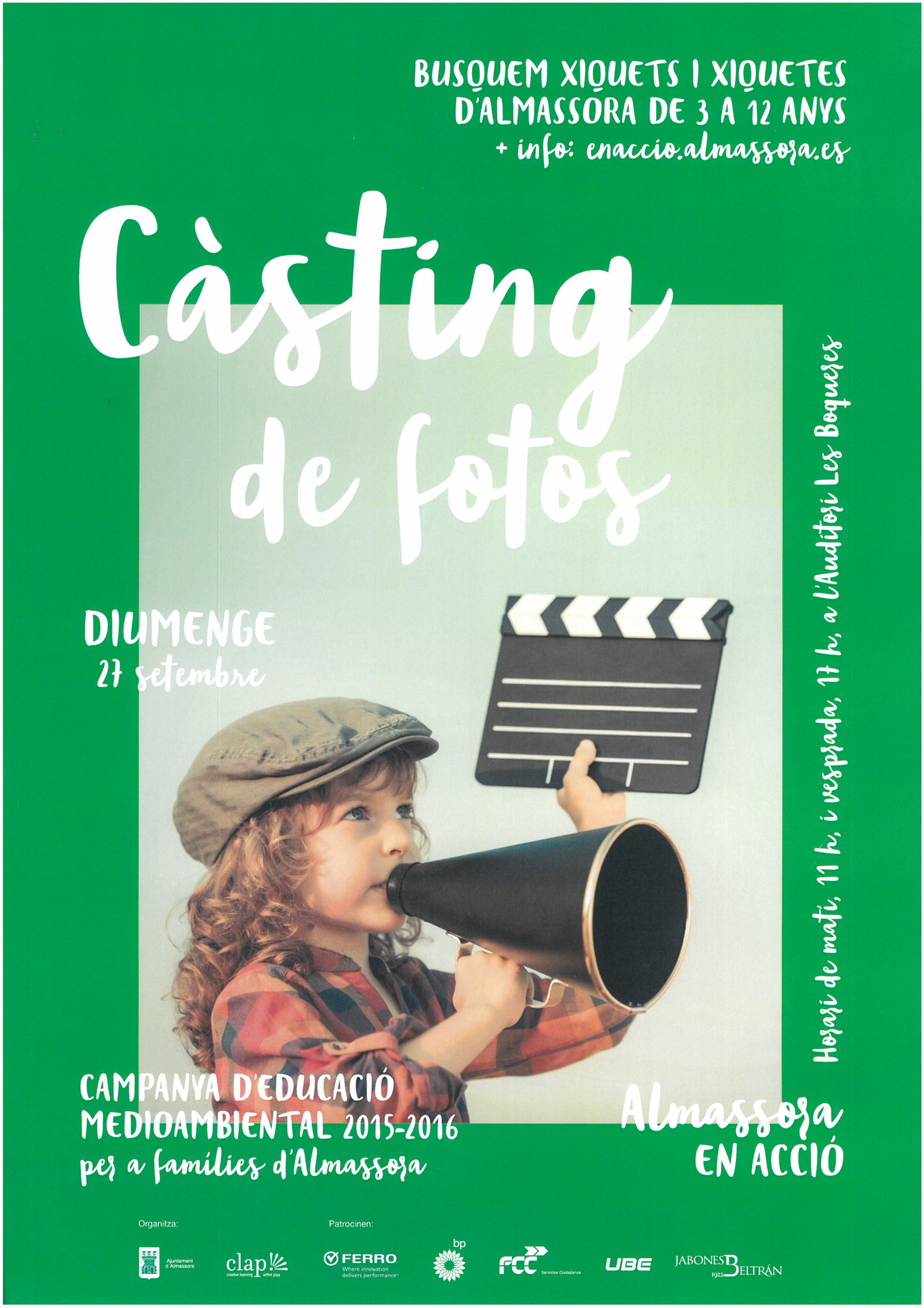 Para ello se crearon una serie de soportes gráficos (carteles) para lo que se realizó un casting entre los niños de la ciudad. En él, participaron 80 niños y niñas y un total de 18 aparecieron en los 7 carteles producidos.
