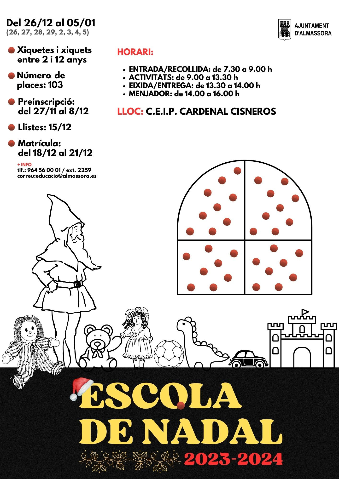 El departamento de educación oferta diferente tipos de actividades, de ocio y tiempo libre para los niños en edad escolar de la población, tanto si están escolarizados en Almassora como en otras poblaciones de la provincia.