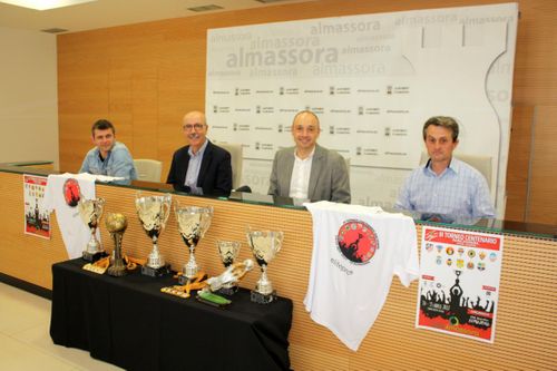 El campo de fútbol municipal José Manuel Pesudo se prepara para la que será la tercera edición del Torneo Centenario del CD Almazora, que, por primera vez, tendrá carácter nacional. El evento, al que acudirán una docena de clubes con sus equipos de categoría alevín y benjamín, ha sido presentado en el Ayuntamiento de Almassora por el presidente del club, Ramón Broch, y su coordinador de fútbol base y entrenador, Ivan Medall. Los impulsores del torneo han recibido el apoyo del concejal de Deportes, Xavier Trenco, y del diputado provincial, Luis Martínez.