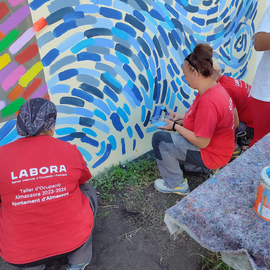 Mural CFA* 03/10/2024: El alumnado/trabajador del "Taller d'Ocupació Almassora 2023-2024" participa en la creación del mural "Cuidadores", que podemos contemplar en la fachada oeste del CFA.Ver más imágenes