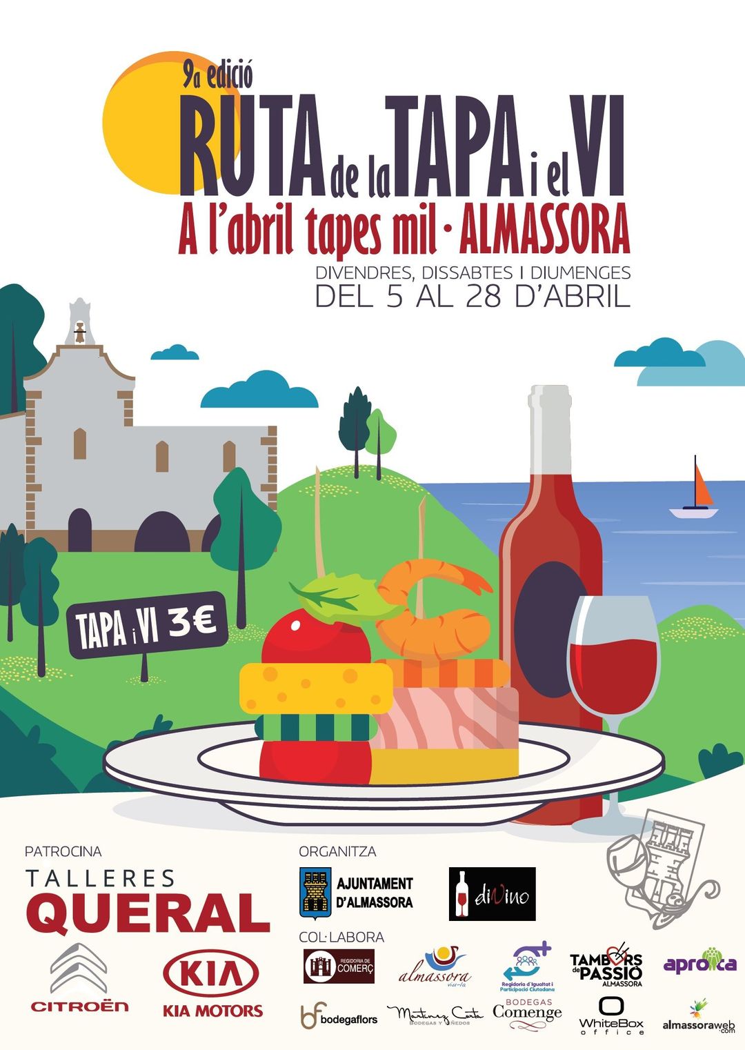 La entidad es uno de los patrocinadores más fieles de esta Ruta de la Tapa i el Vi, que también recibe el apoyo de Talleres Queralt. Asimismo el proveedor local Divino Vins ha seleccionado los caldos Flor de Taronger (Bodegas Flors, IGP Castelló), Biberius roble (Bodegas Comenge, DO Ribera del Duero) y Cepas Antiguas Selección Privada (Bodegas Martínez Corta, DO La Rioja) para regar las tapas, tras la buena aceptación que estos vinos han tenido en anteriores ediciones. No obstante, los comensales también podrán pedir agua, refrescos o cerveza para acompañar los platos.