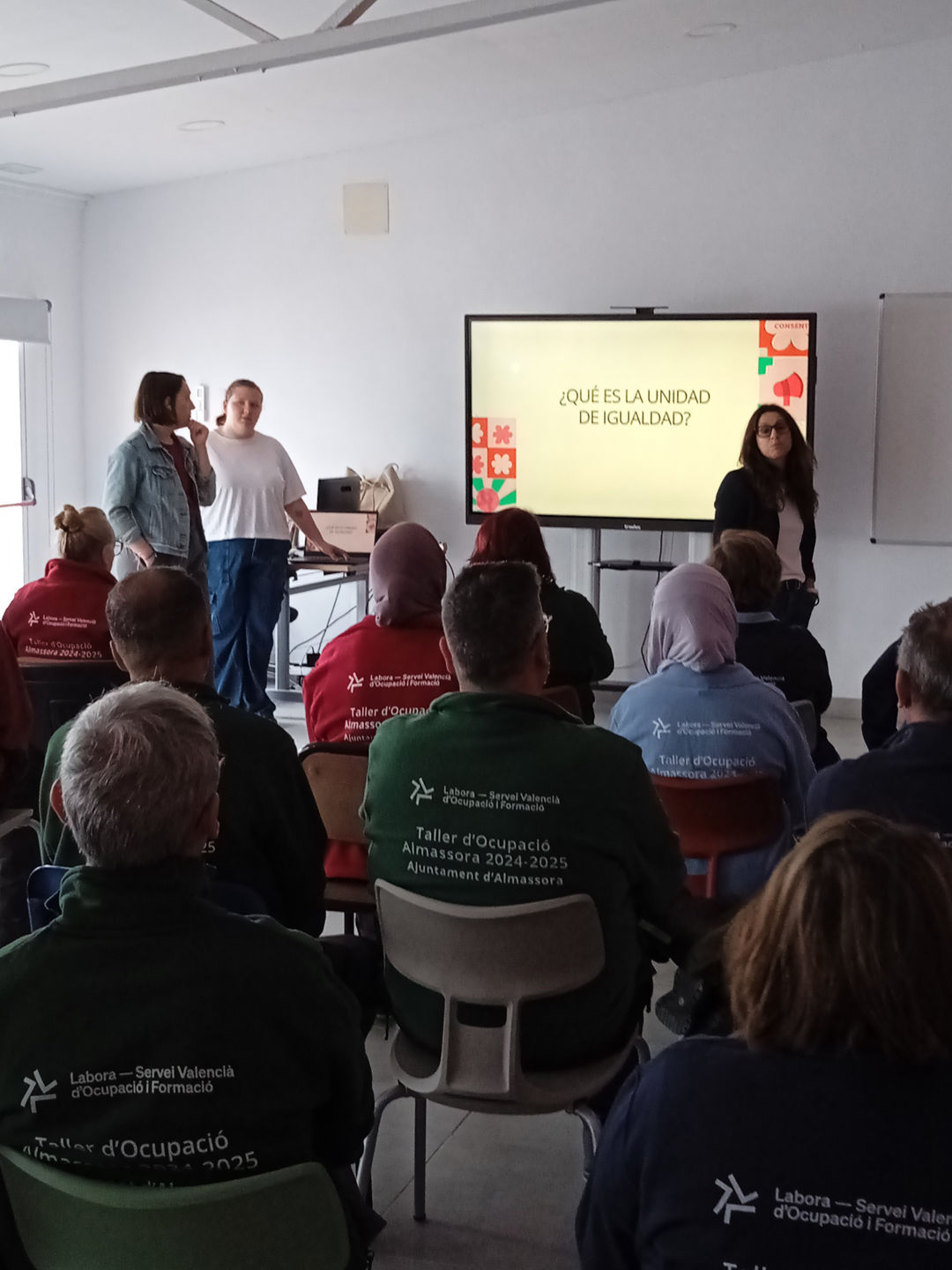 Taller de Igualdad* 07/05/2025 - Las técnicos del "Unitat igualtat" han realizado un taller de igualdad al conjunto del Taller de Empleo, realizando dinámicas y charlas sobre la igualdad.